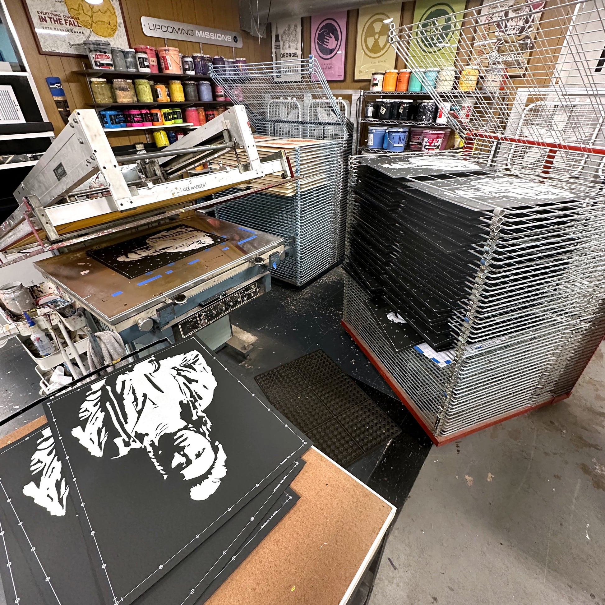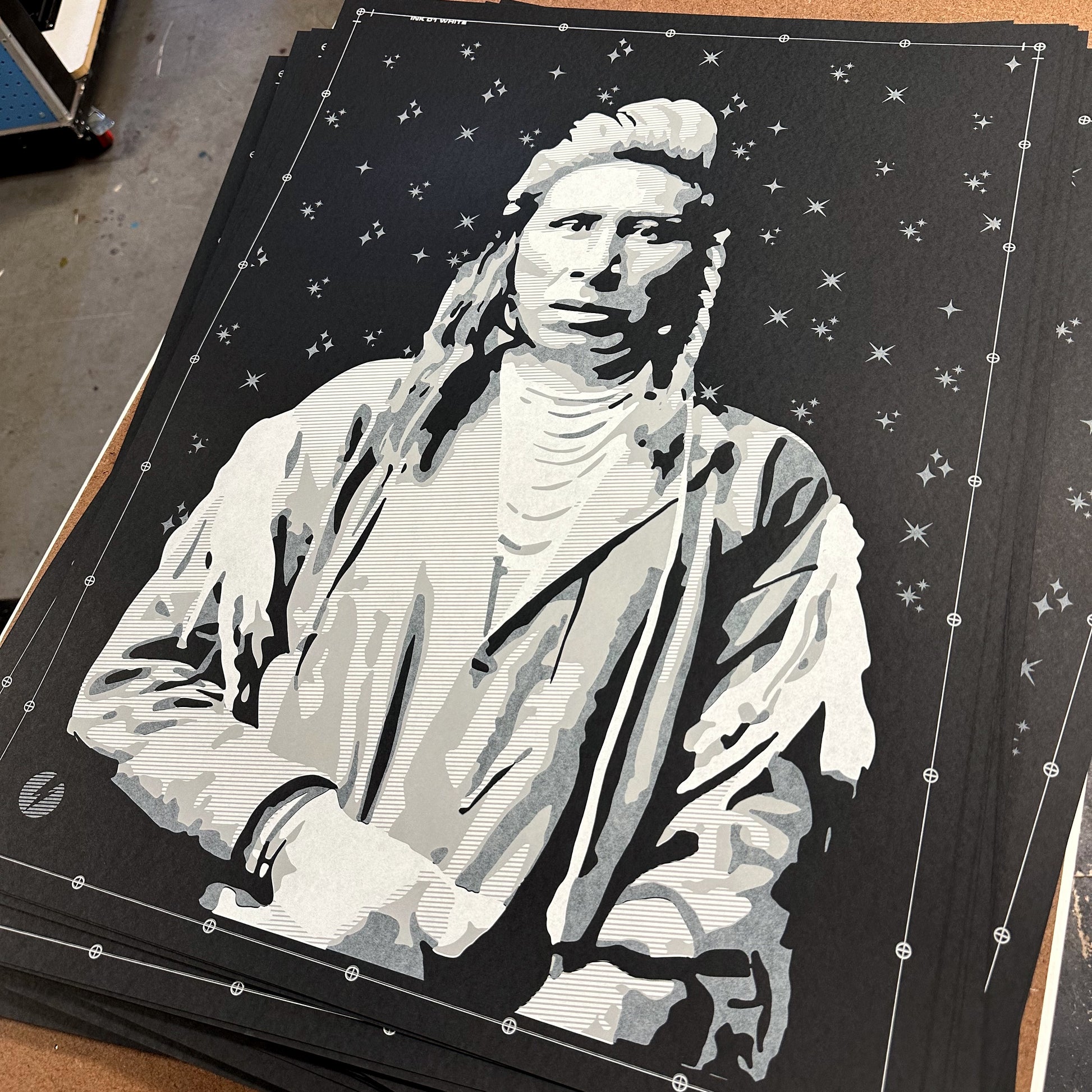 Screen print on black paper (hand pulled)